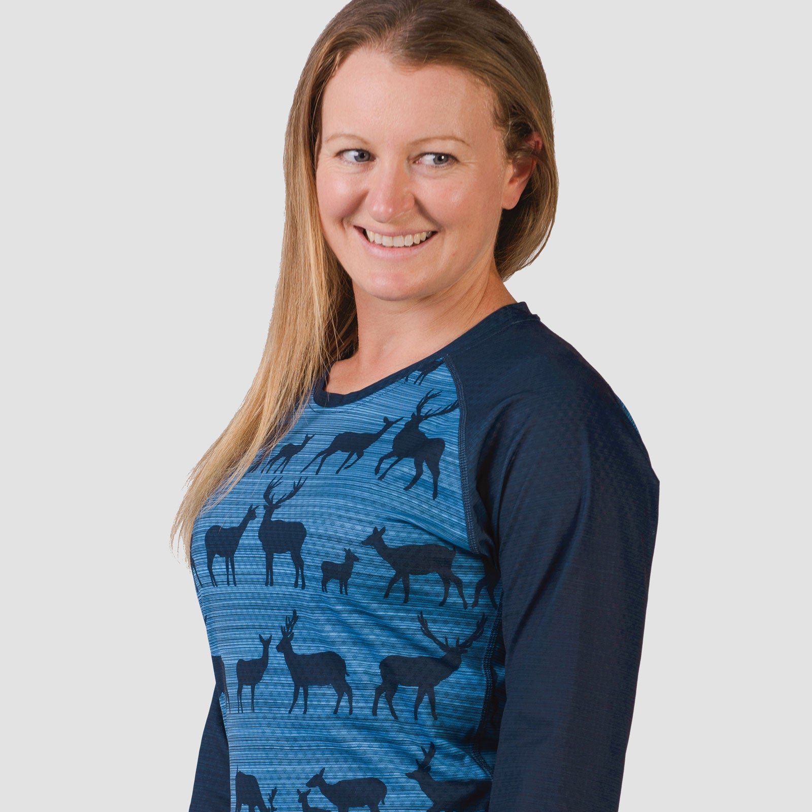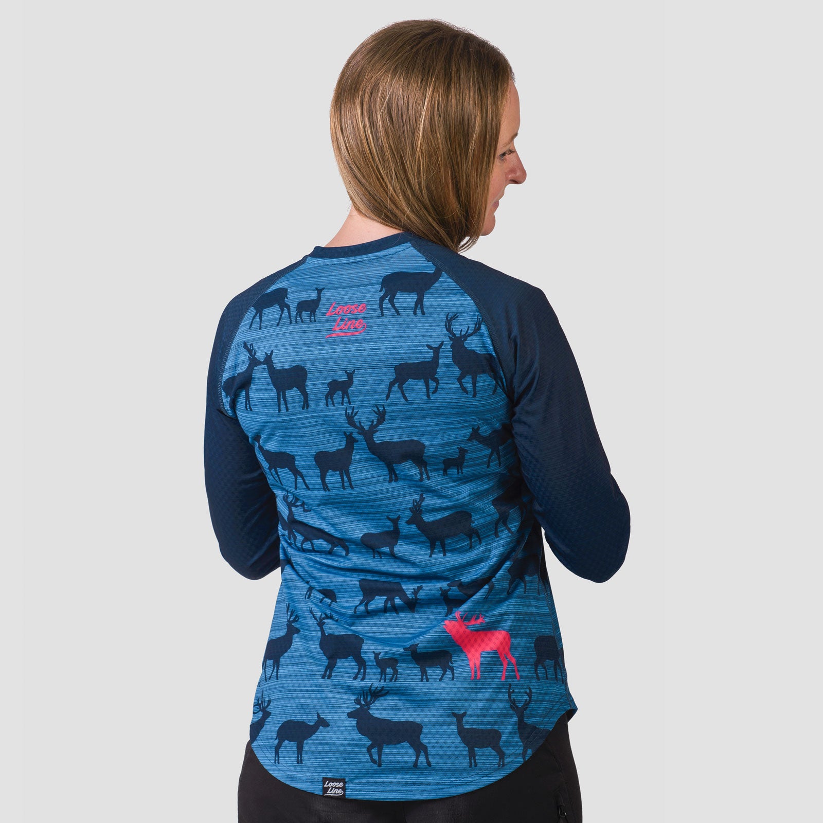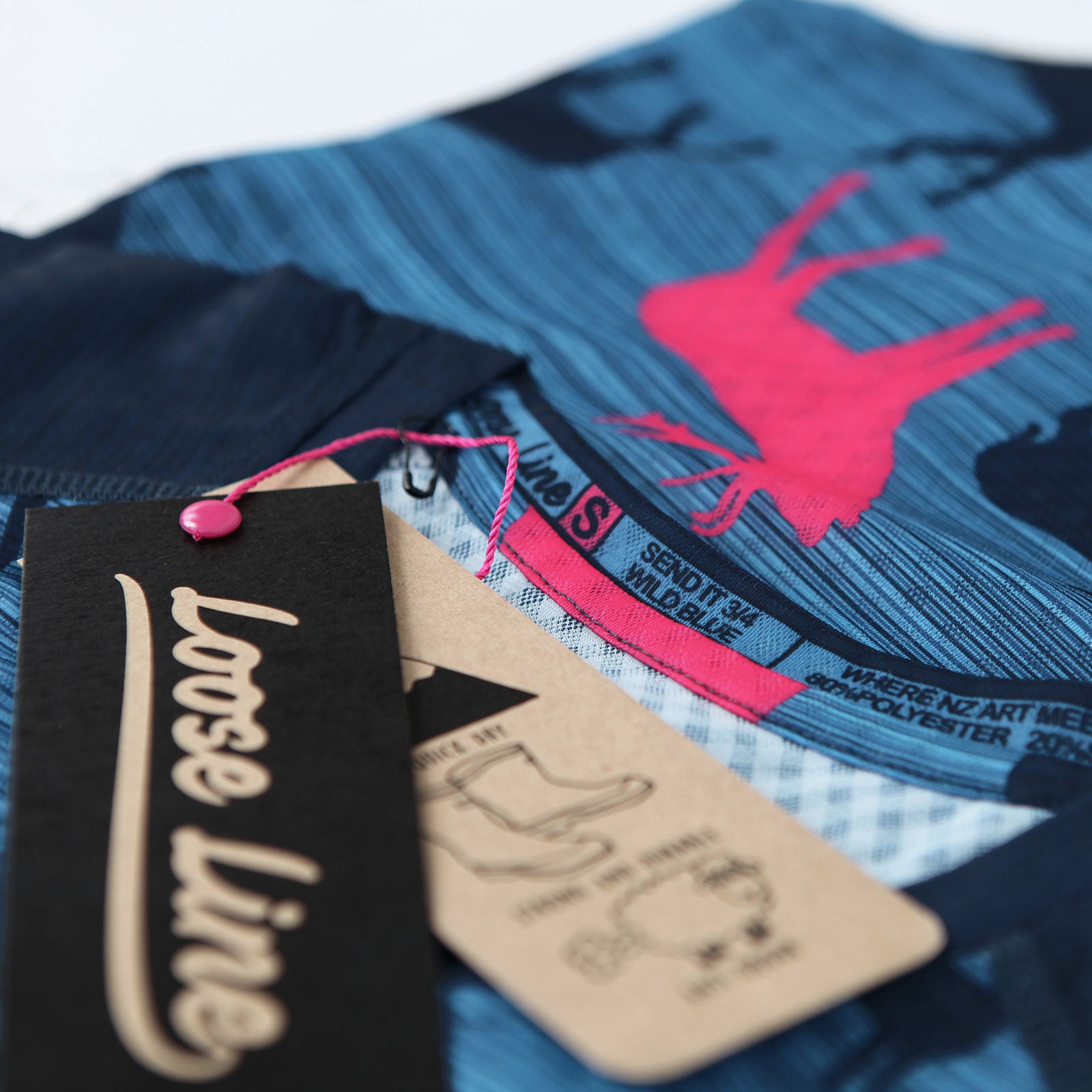 We've been inspired by riding and hiking around Aotearoa, and have decided to bring the native to you. This top features some deer milling around doing their thing - with a highlighted stag making a bit of noise.