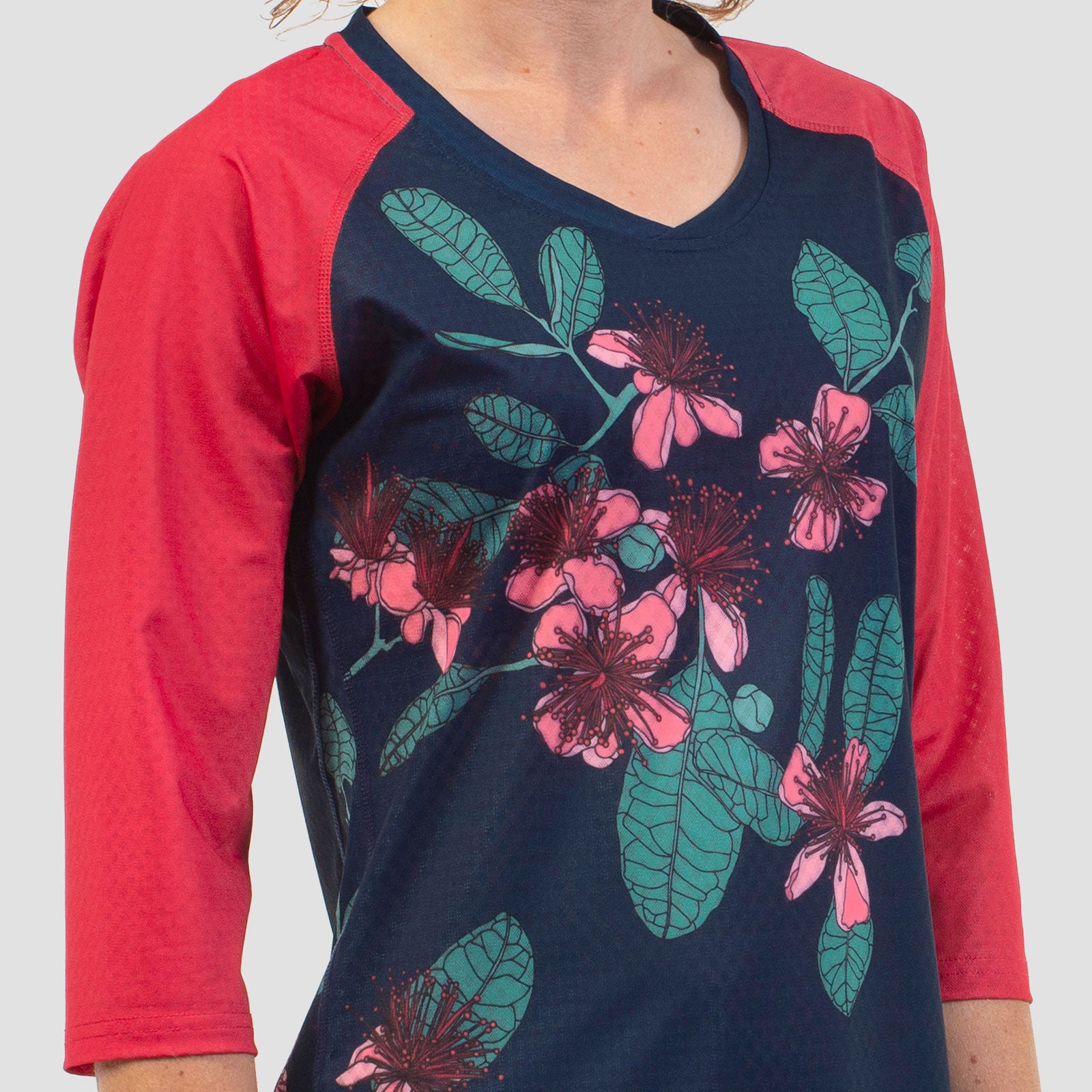 Raglan 3/4 length sleeves for excellent movement and fit while also offering a bit more protection from the elements.