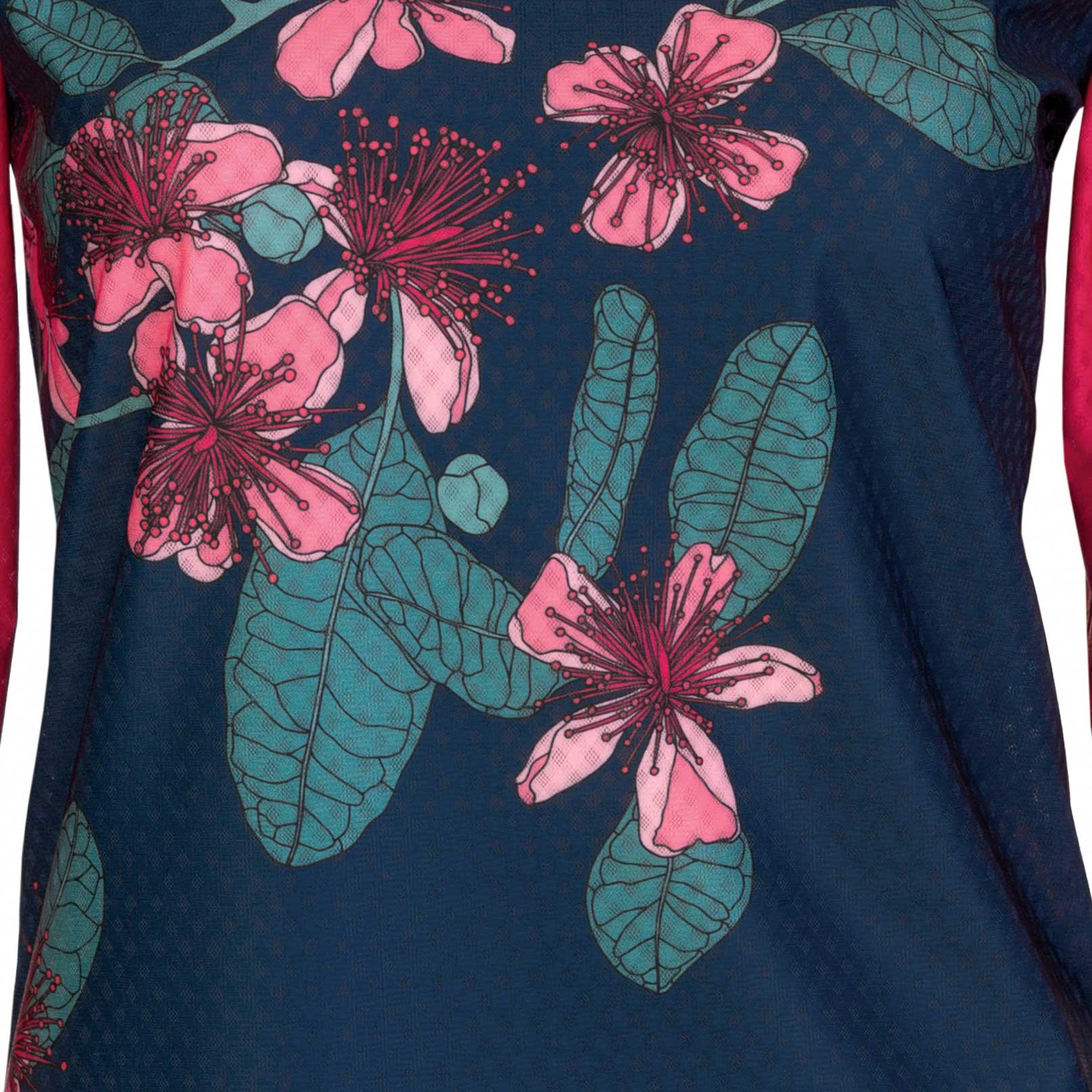 This top features the Feijoa flowers and leaves - native to Brazil and Uruguay. They are very widespread and grown easily almost anywhere in NZ. There's almost nothing better than a freshly picked one after a hard day in the hills. You can also have a nibble on the mildly sweet petals, or throw them in salads.