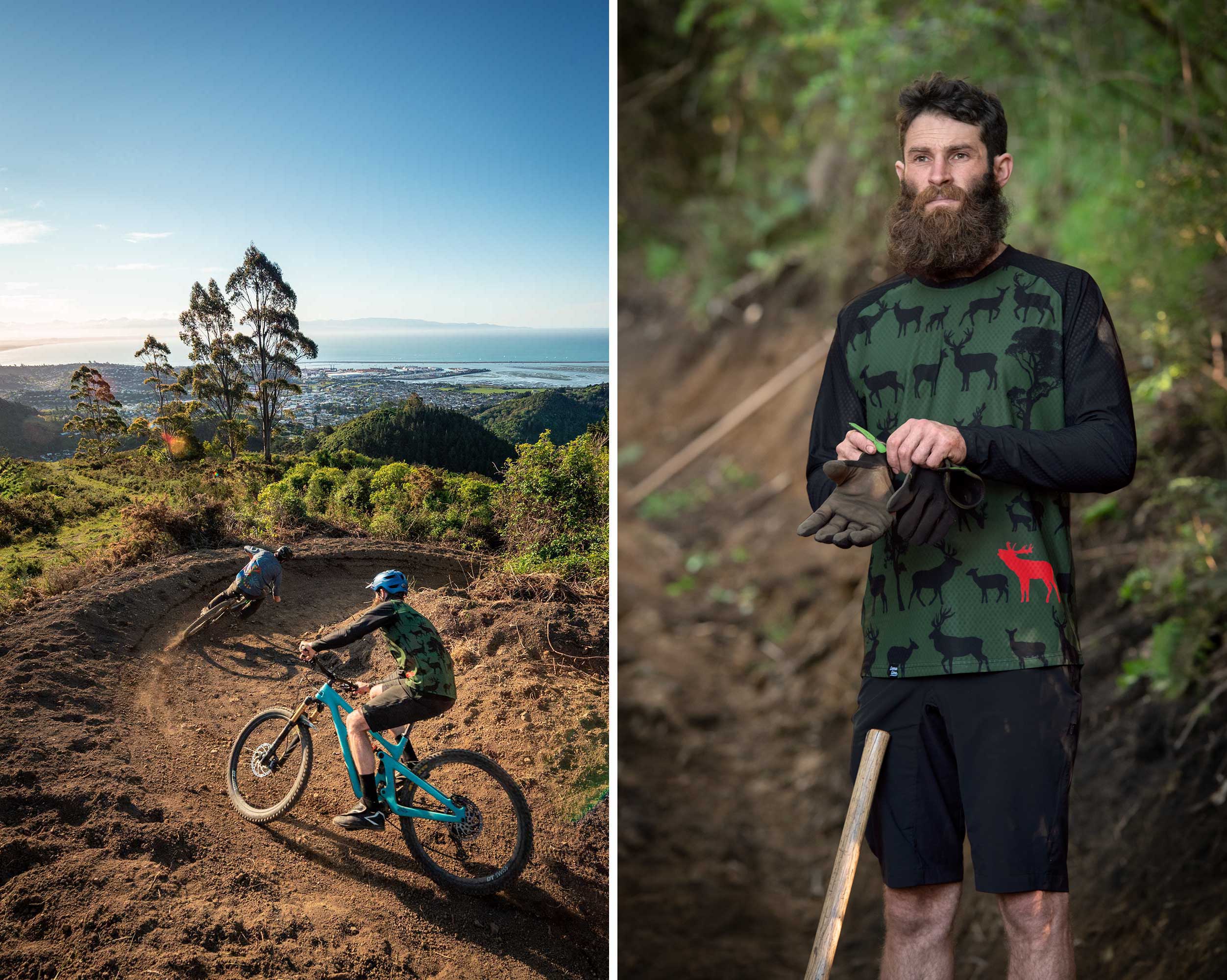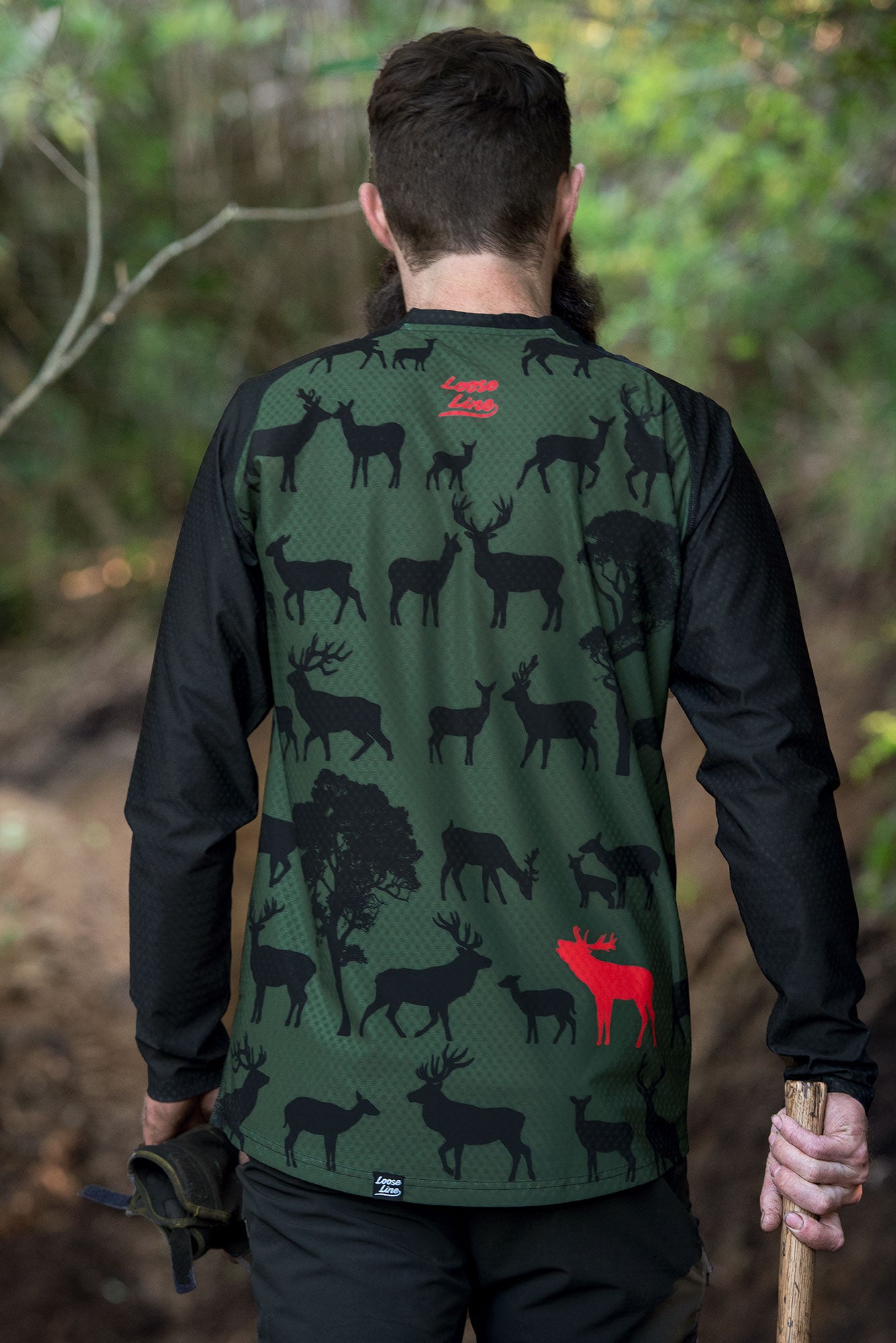 We've been inspired by riding and hiking around Aotearoa, and have decided to bring the native to you. This top features some deer milling around the native trees with a highlighted stag making a bit of noise.