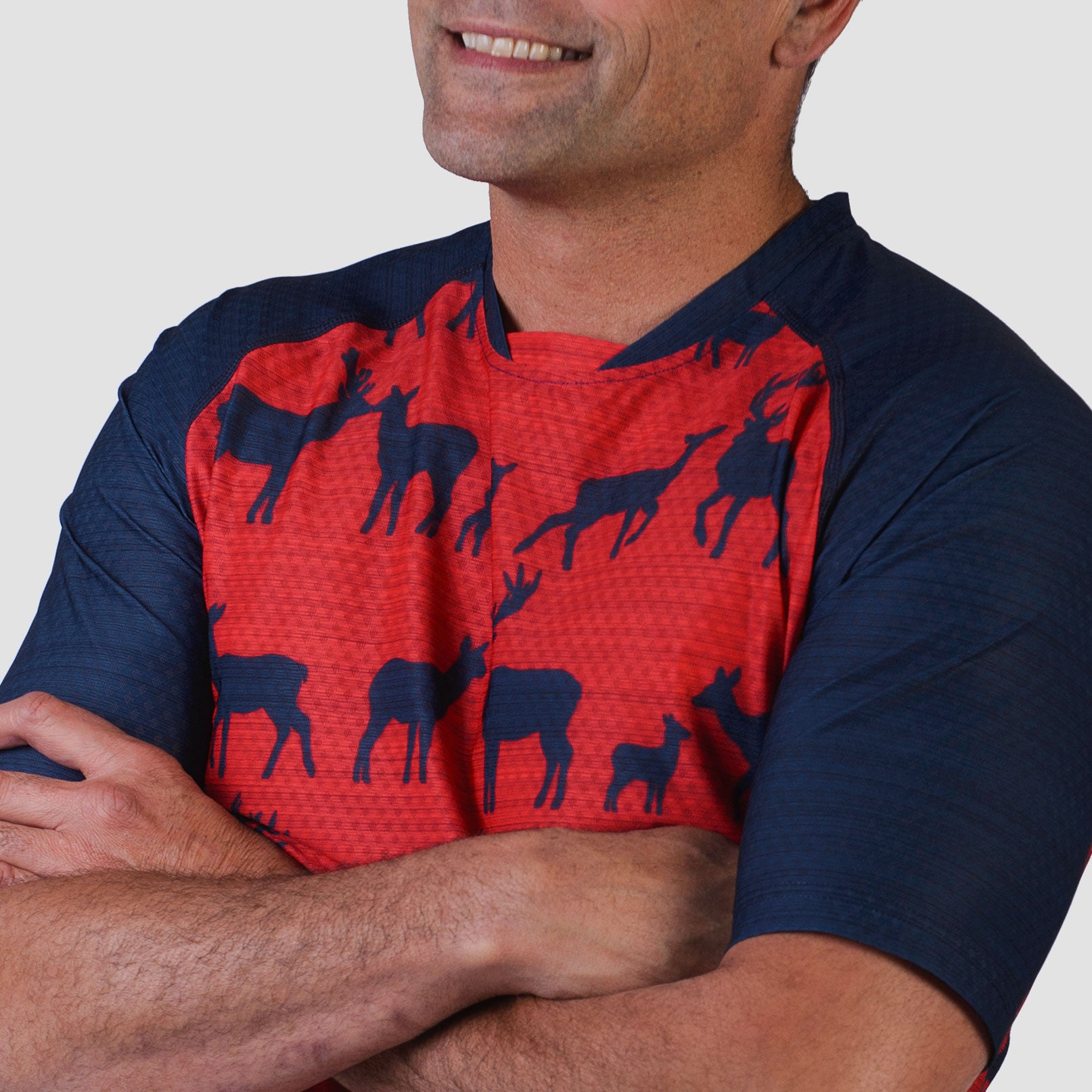We've been inspired by riding and hiking around Aotearoa, and have decided to bring the native to you. This top features some deer milling around with a highlighted stag making a bit of noise.